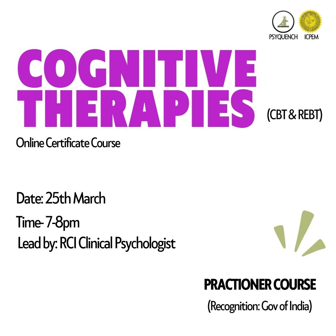 An important component of Cognitive Therapies are Cognitive Behavioral Therapy (CBT) and Rational Emotive Behavior Therapy (REBT), help individuals identify and change negative thought patterns of anxiety, depression, stress and many more. CBT focuses on restructuring thoughts, while REBT emphasizes rational thinking to overcome distress. Learning these therapies enhances counseling skills and helps clients manage anxiety, depression, and irrational beliefs. Join to gain expertise, improve effectiveness, and advance your career in mental health.